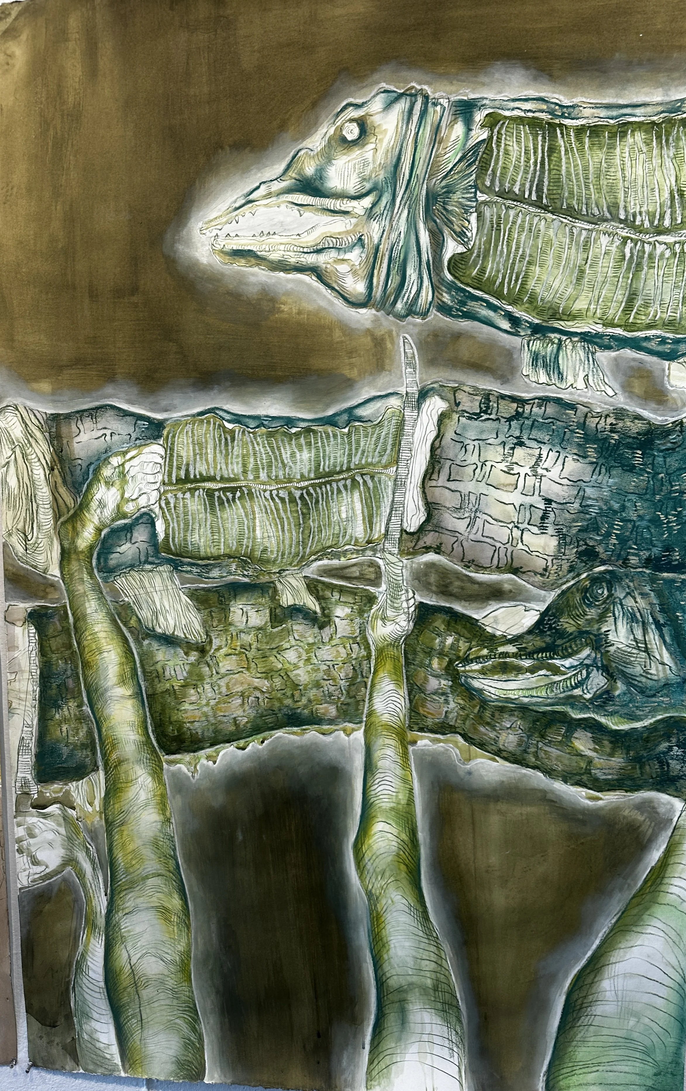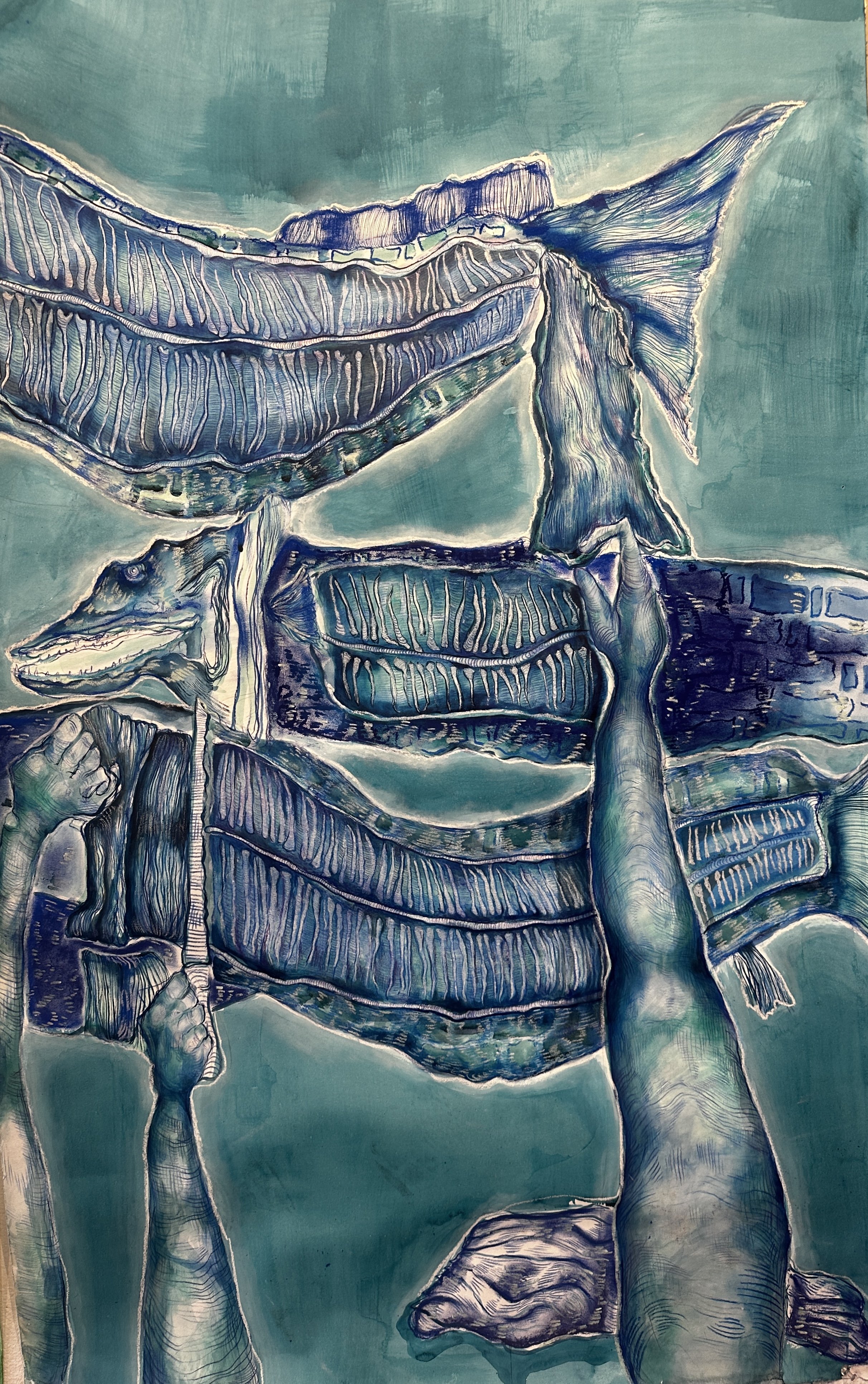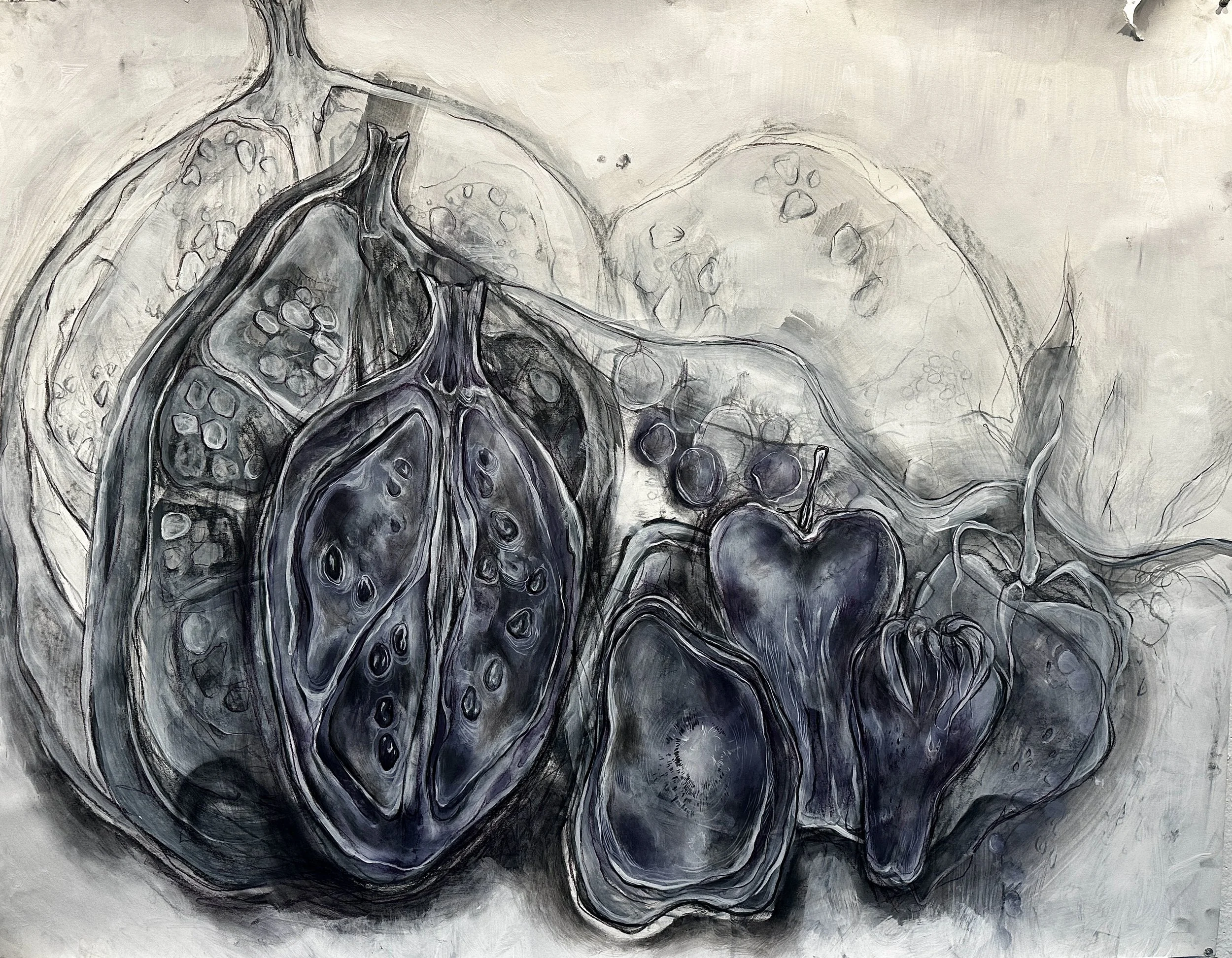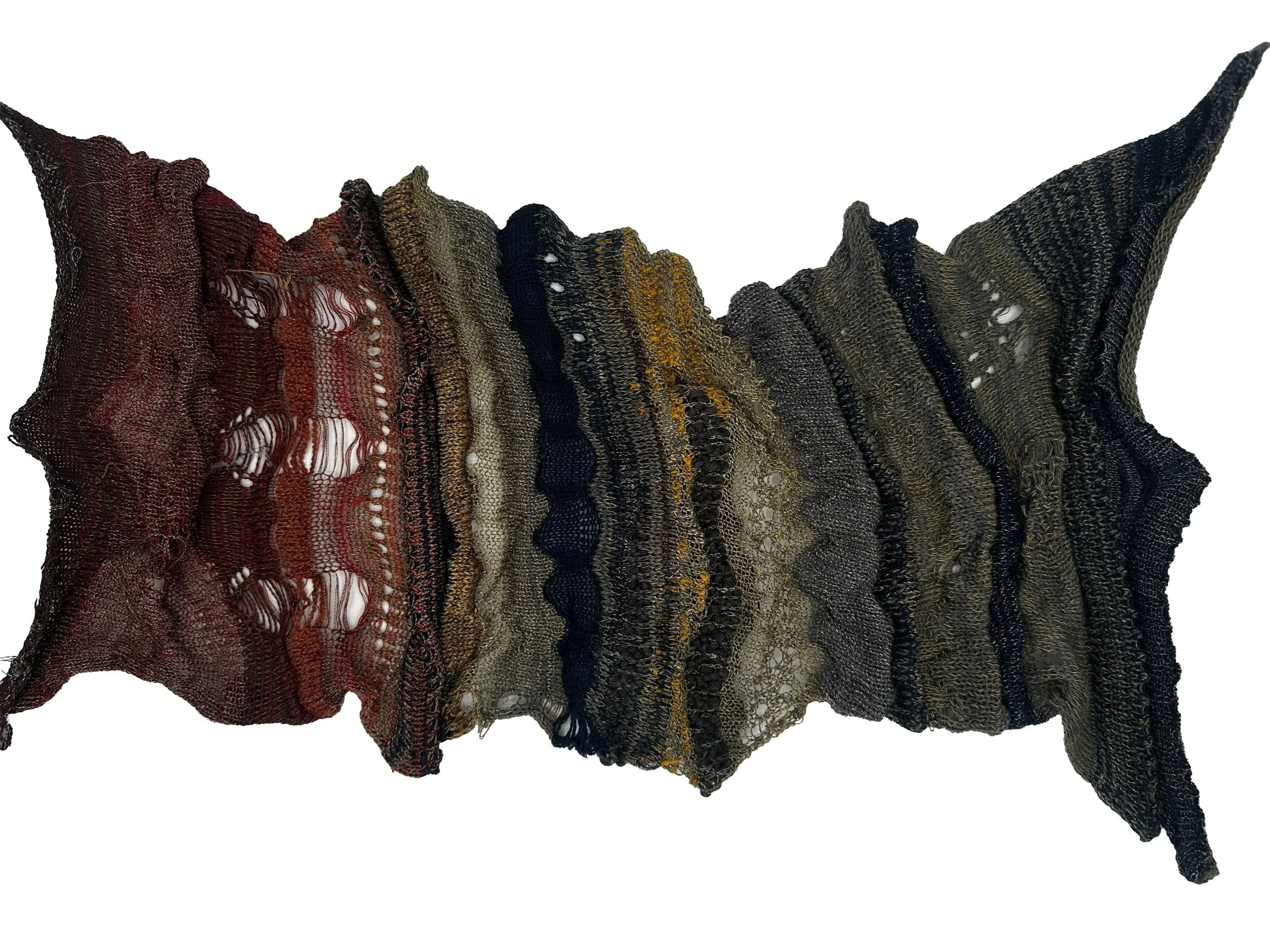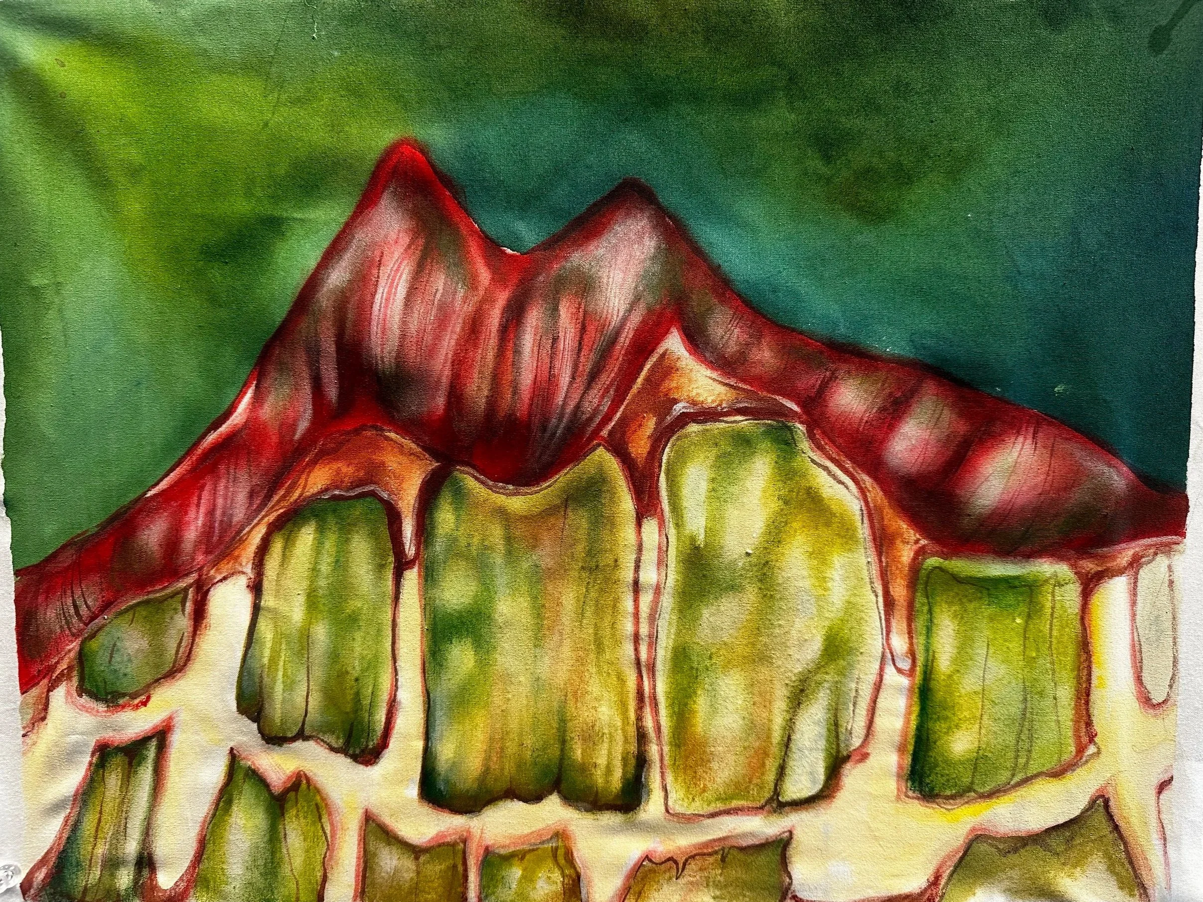 Maja Williams is a textile designer, painter, and aspiring tattoo artist from Pittsburgh, PA. As of now, she studies toward graduating with a Textile Design BFA at the Rhode Island School of Design by 2028. With a background primarily based in painting, she evolves to a materialization of her strokes. She is currently consumed by the manipulation and computation of fiber structure, the compilation of dye chemistry, and the intertwinement of history in design, all informed by her understanding of drawing as a lifelong tool. Noticing objects of rust and decay throughout her surroundings specifically direct and ignite the drive around a conceptual saturation of time.